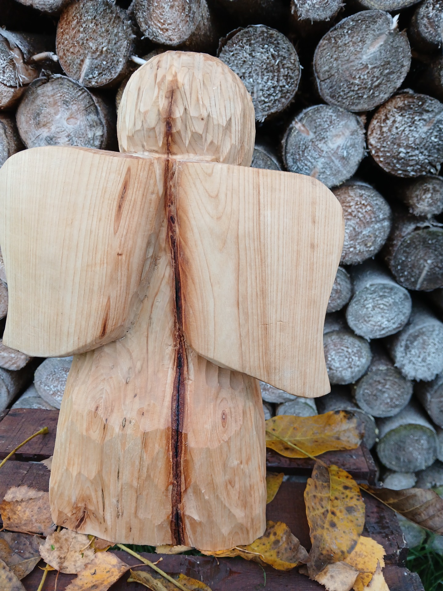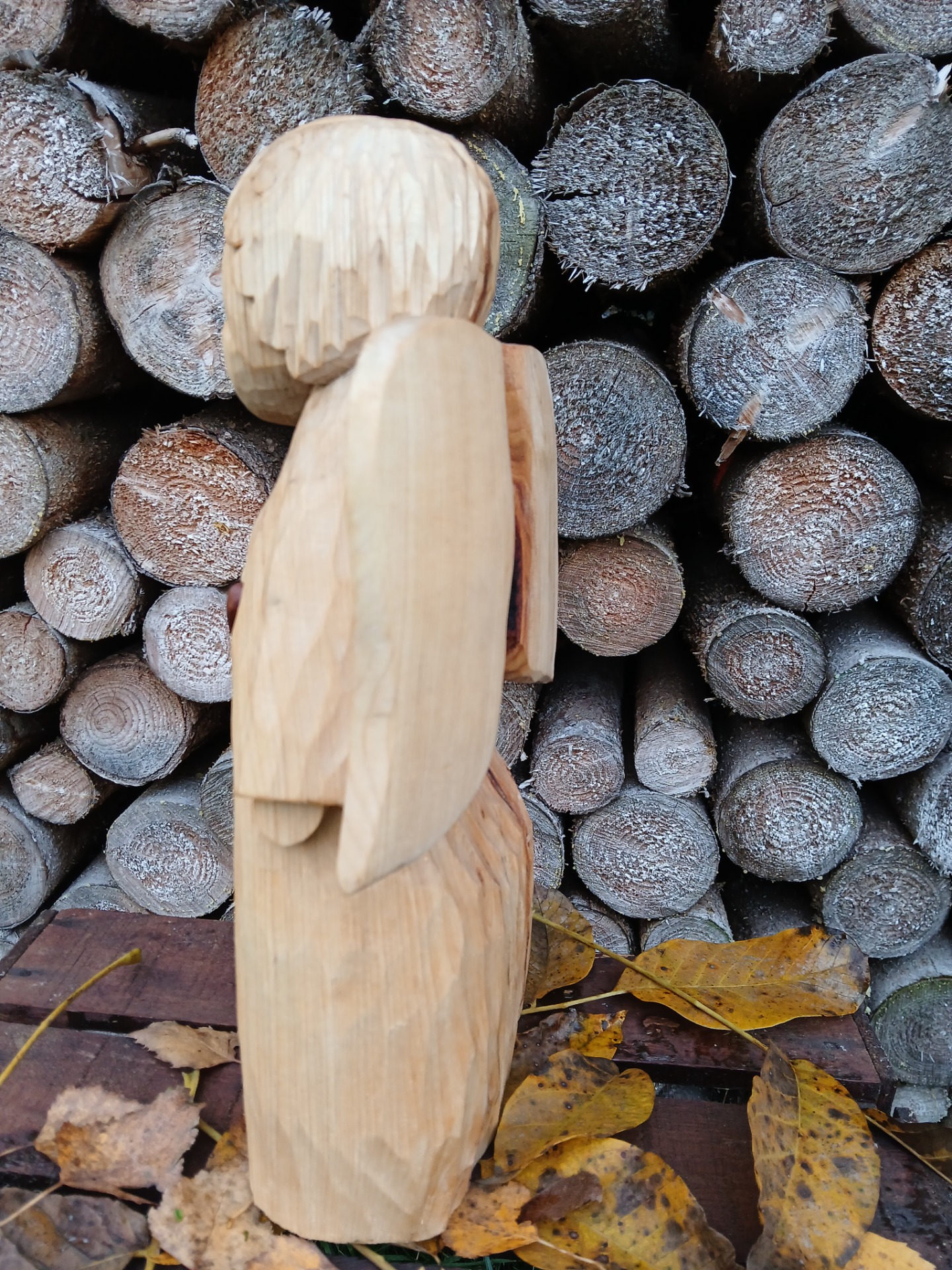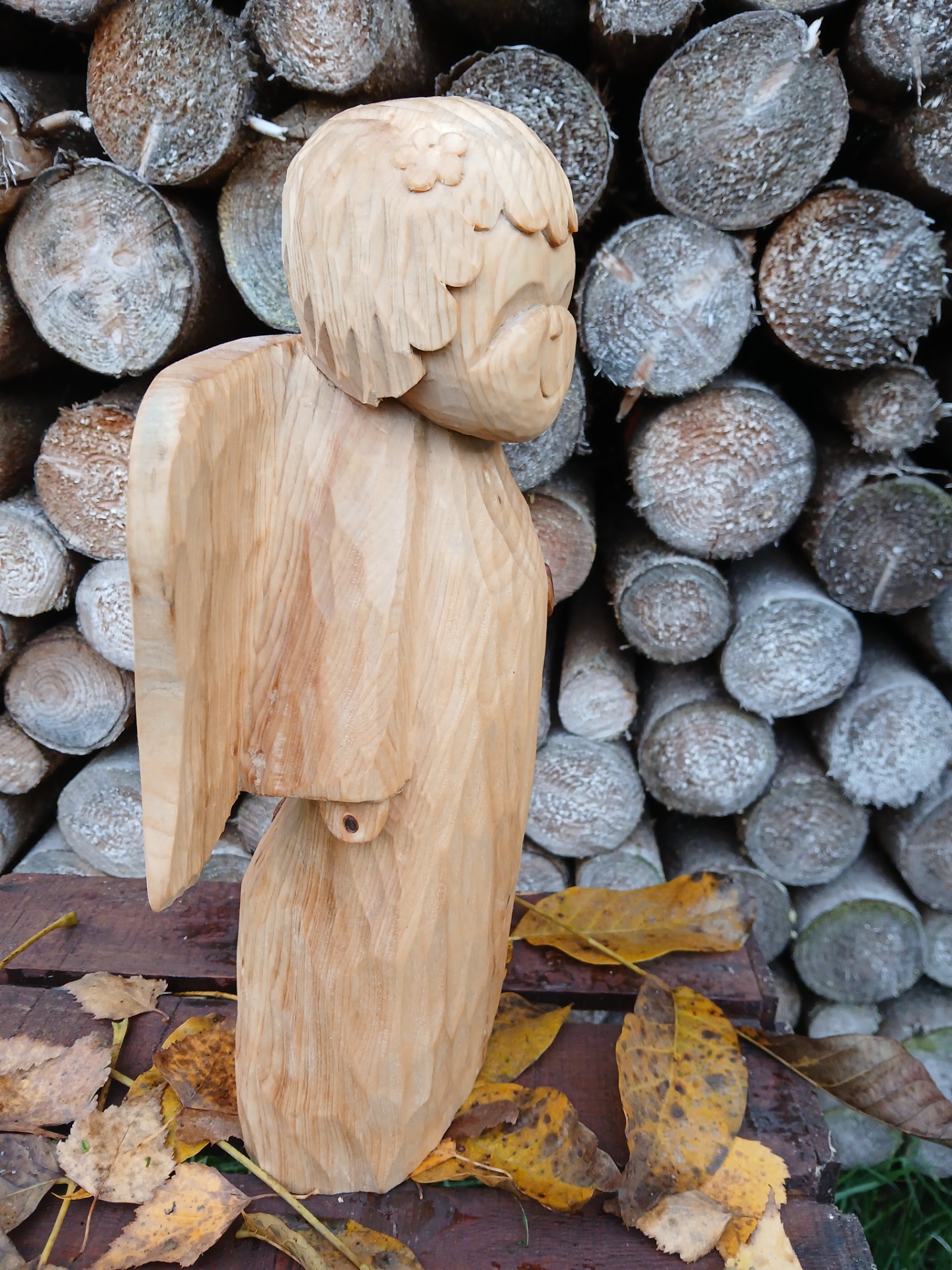 Ručně vyřezaný andílek z lipového dřeva. Ošetřen olejem s včelím voskem.Vhodné do interieru. Výška 35cm