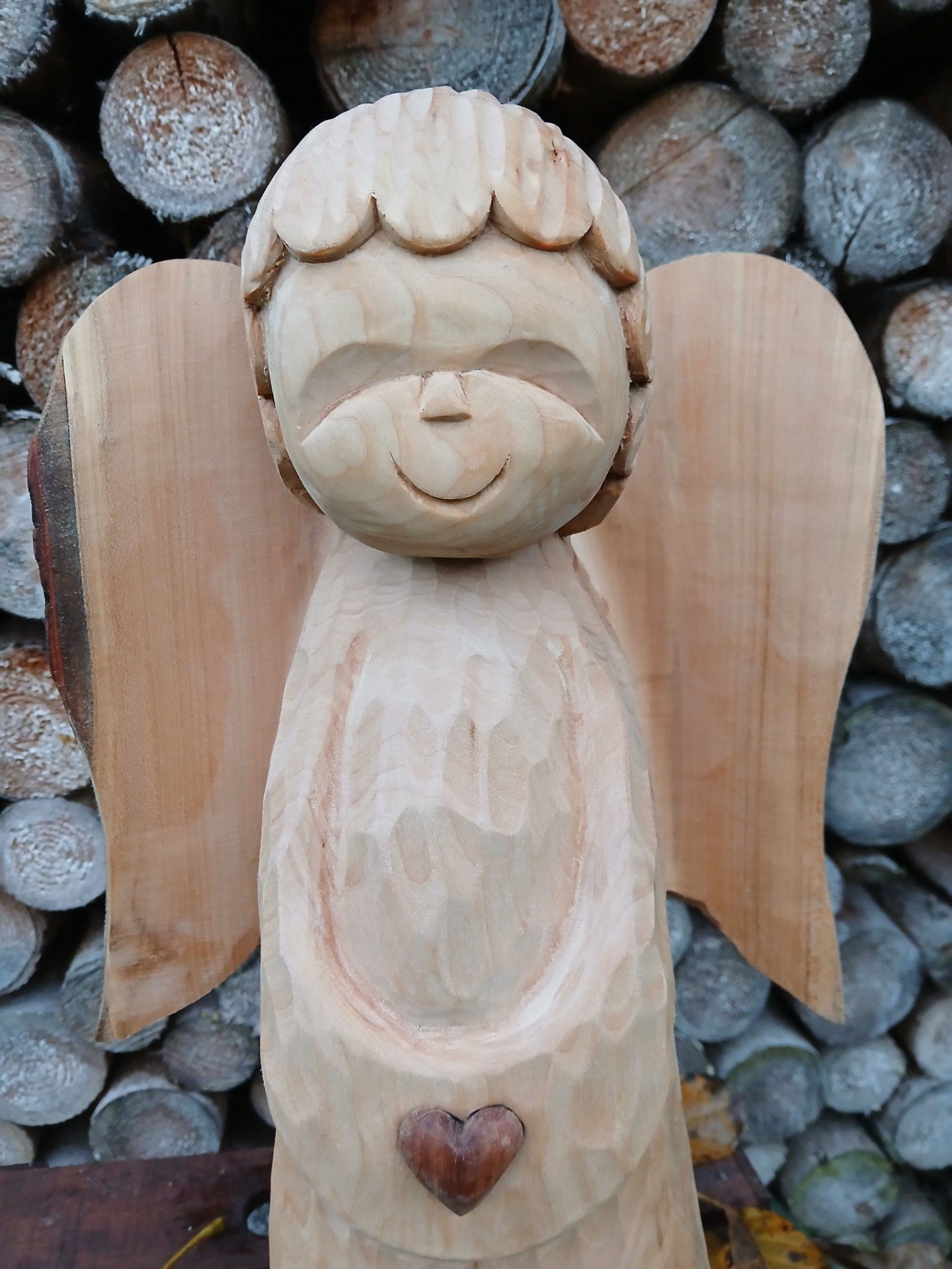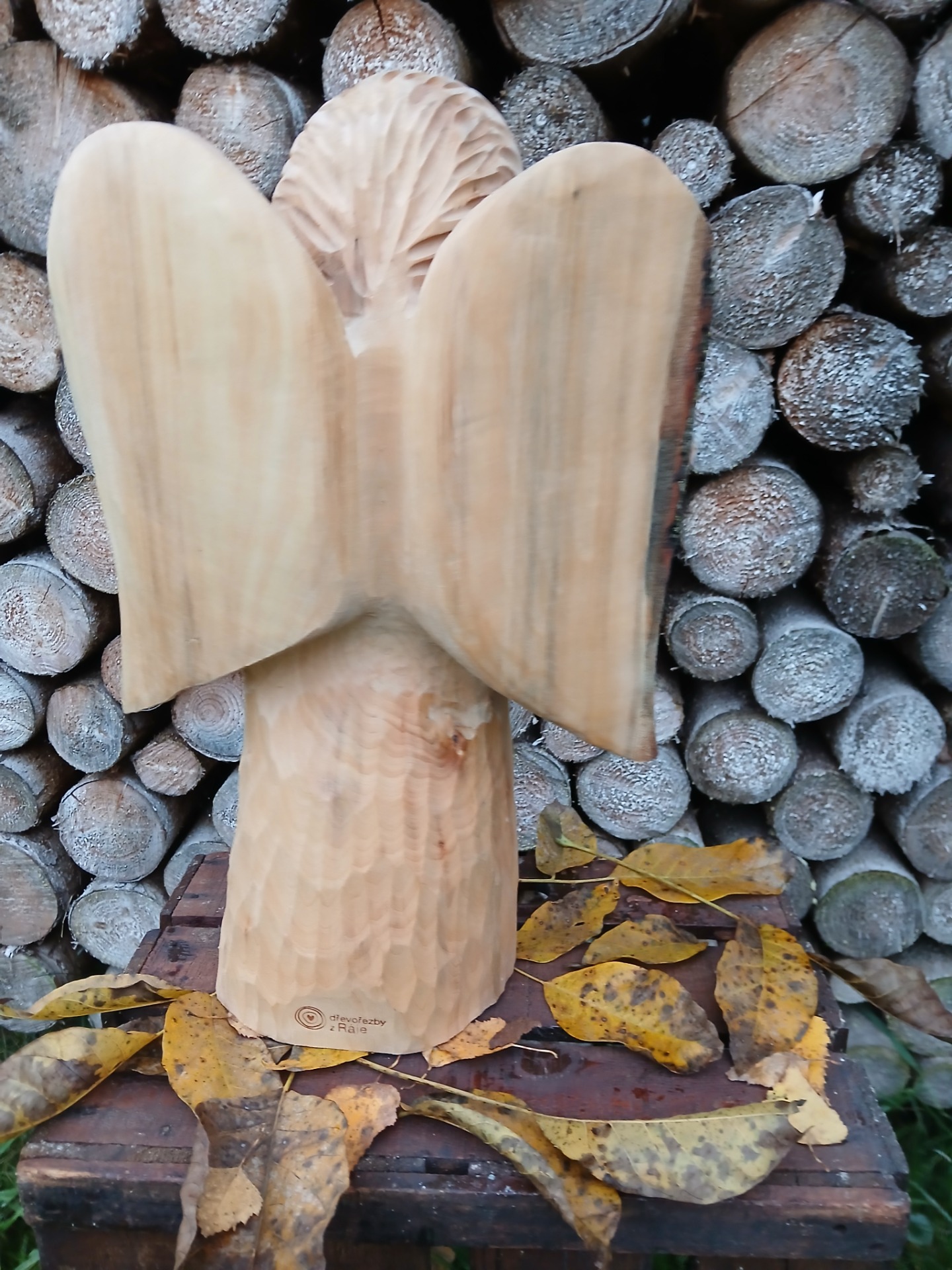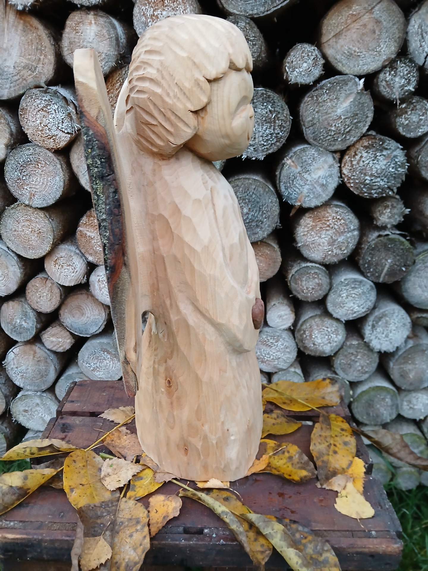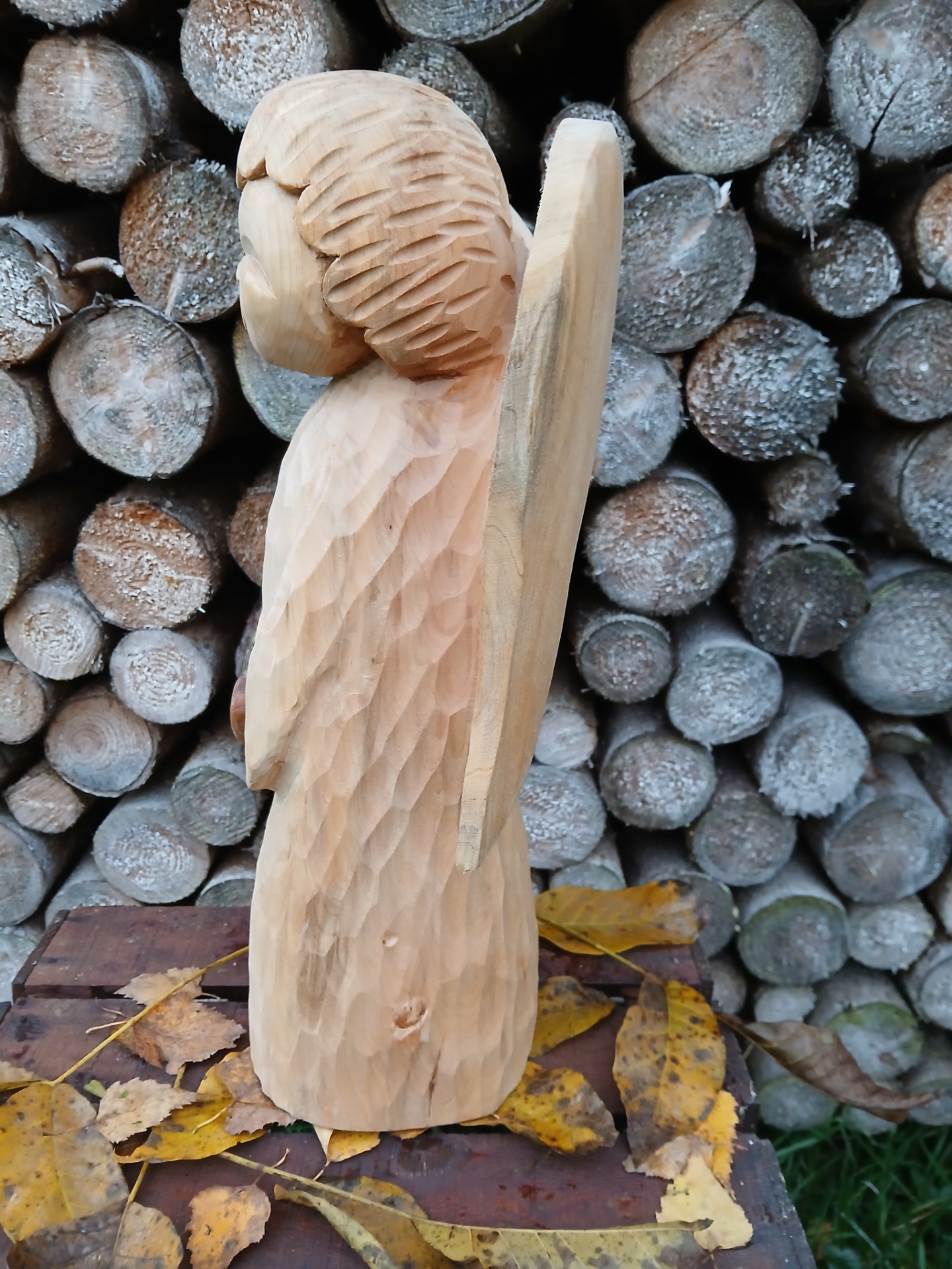 Ručně vyřezaný anděl z lipového dřeva. Ošetřen olejem s včelím voskem.