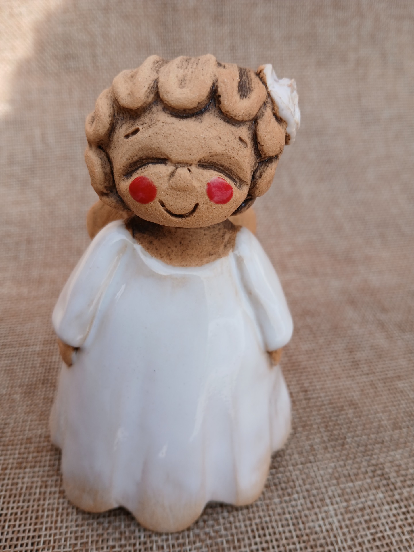 Ručně modelovaný andílek z keramické hlíny.Glazura a burel. Páleno 1150 stupňů.
