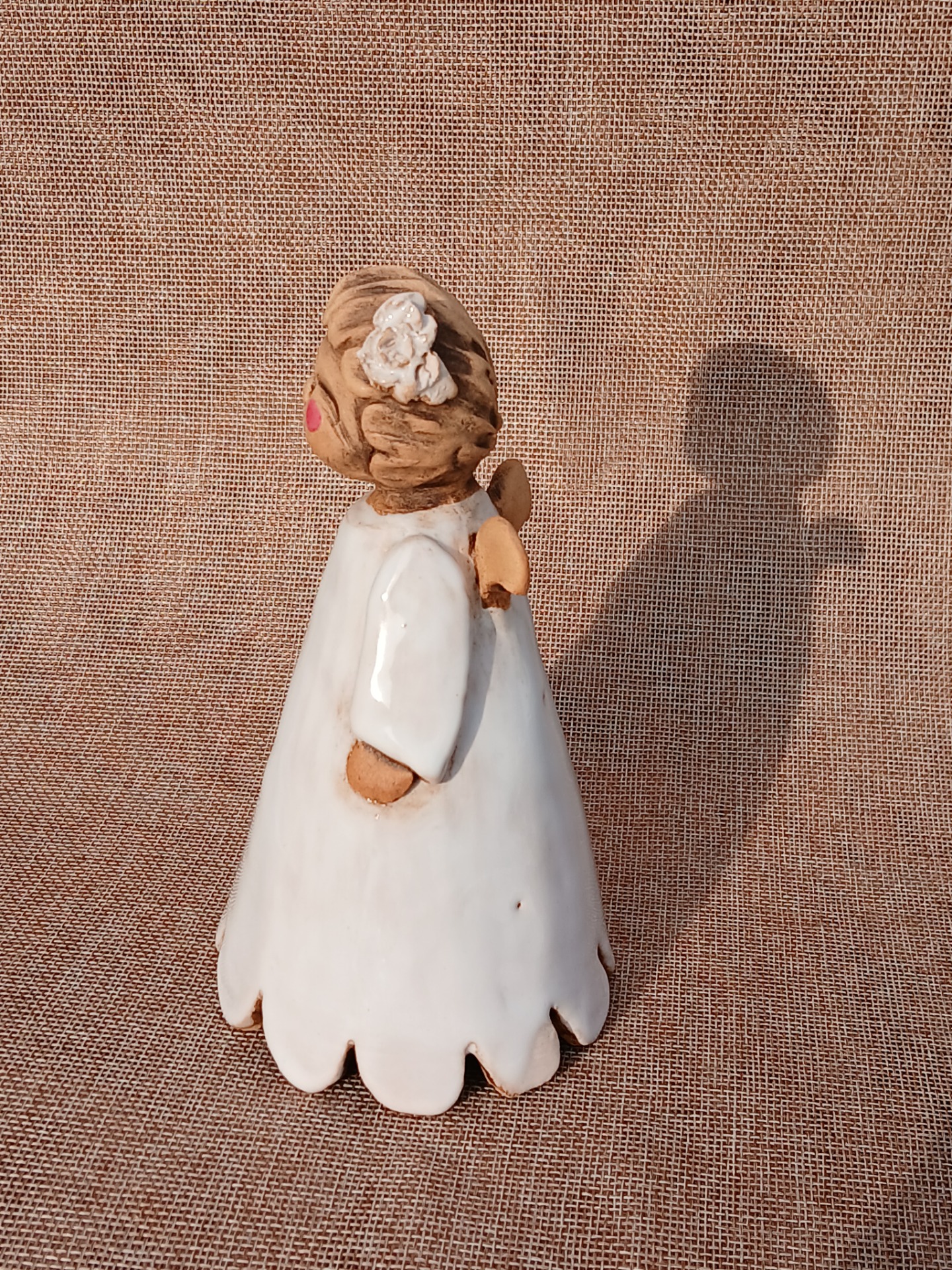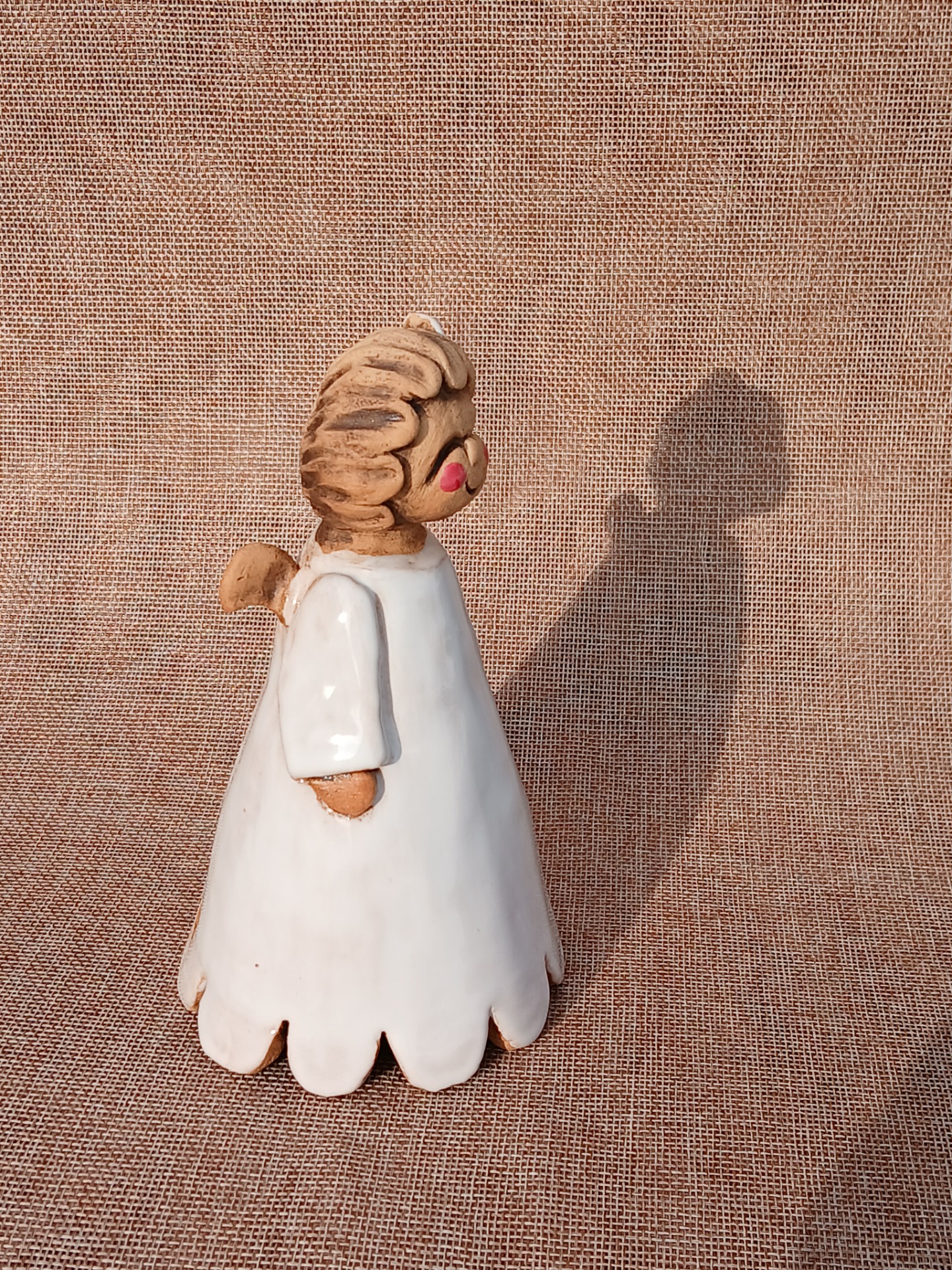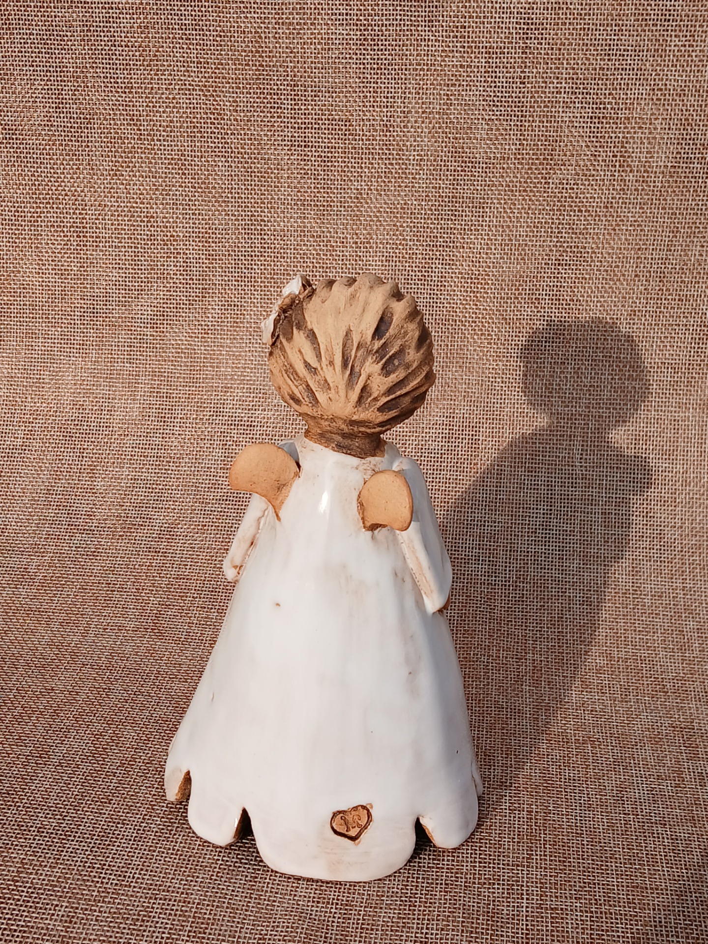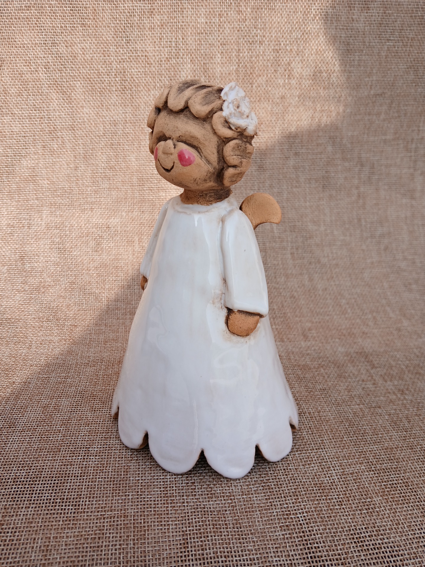 Ručně modelovaný andílek z keramické hlíny. Glazura a burel. Páleno na 1150 stupňů. Andílek je symbol ochrany.17 xm x 11 cm