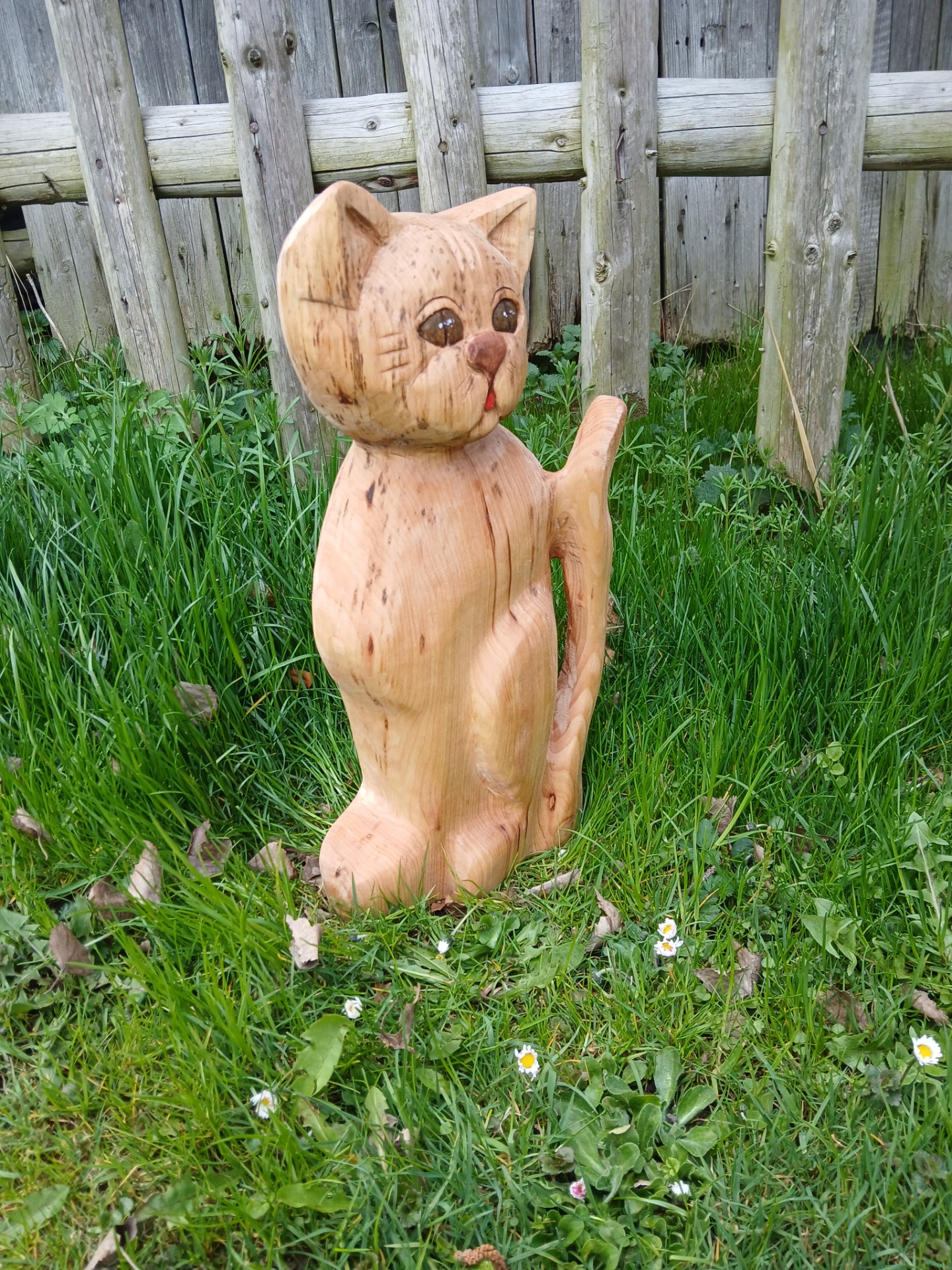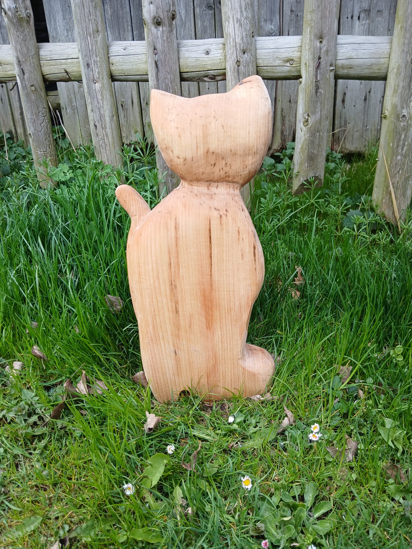 Ručně vyřezaná soška kocoura z lipového dřeva. Ošetřena světlicovým olejem a včelím voskem.