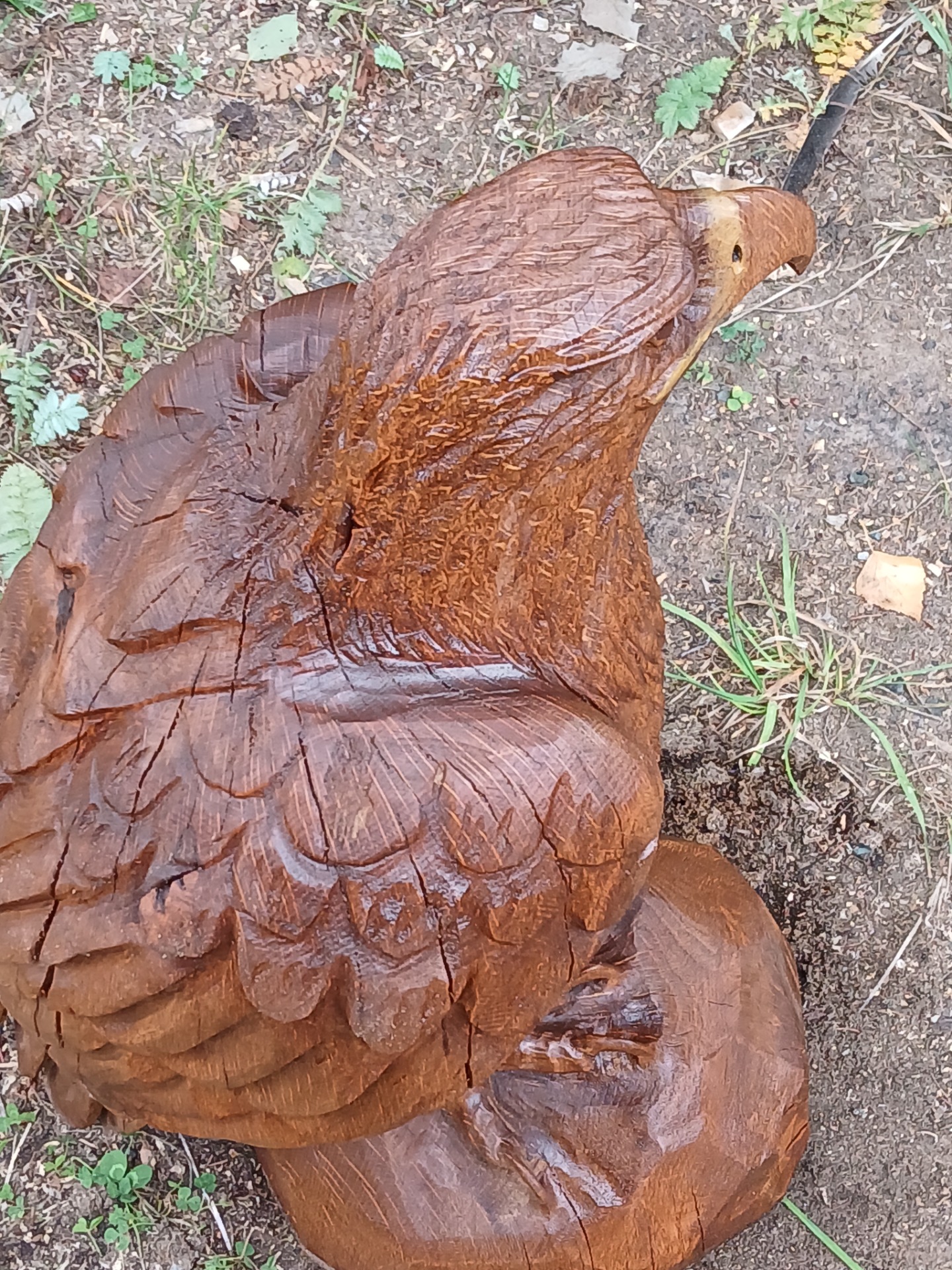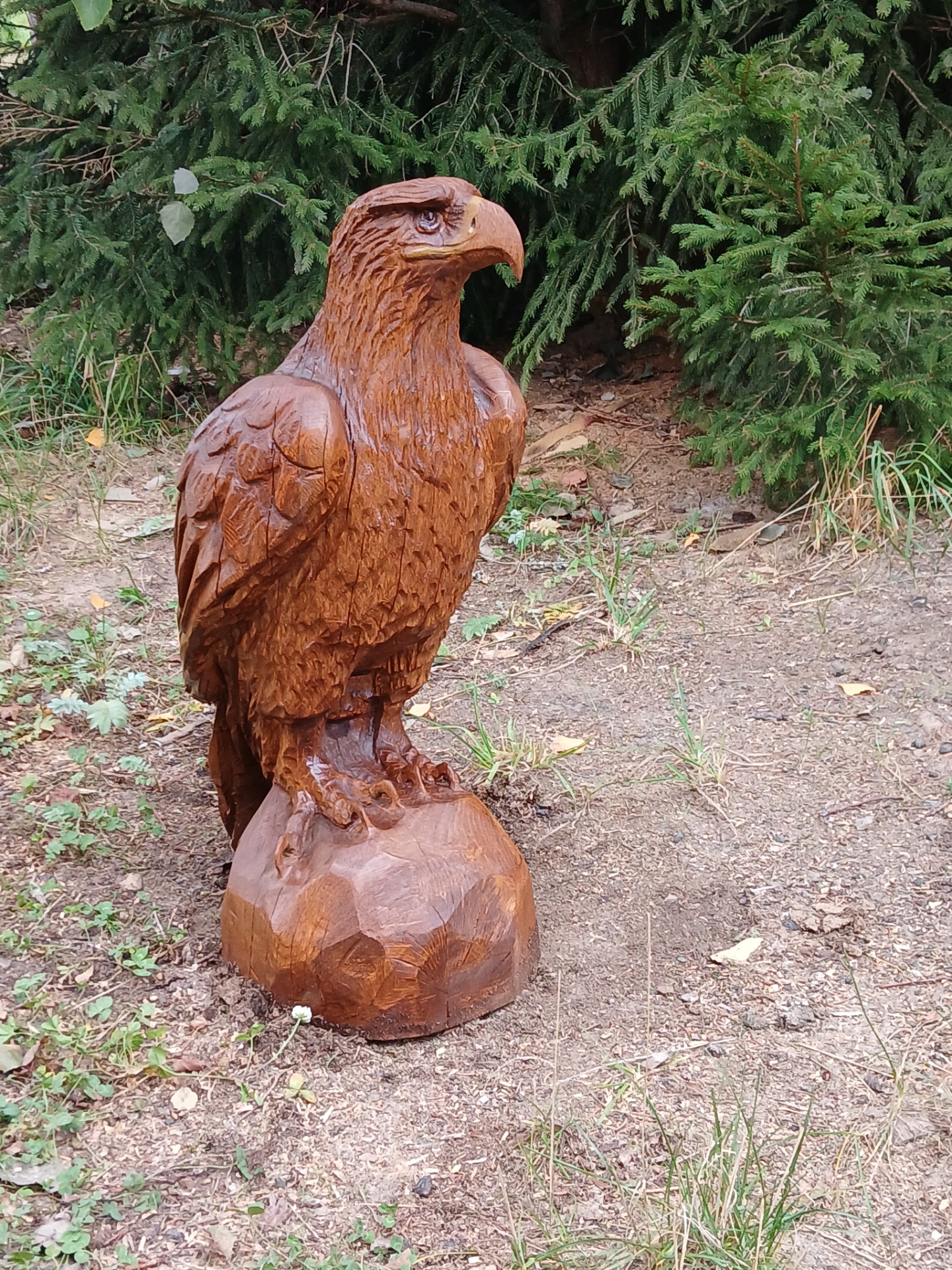 Dřevořezba orla je vyřezaná z dubu.Ošetřena lazurou karbolineum jantar. Vhodná do exterieru. Osobní předání. Výška 80cmŠířka 50cm