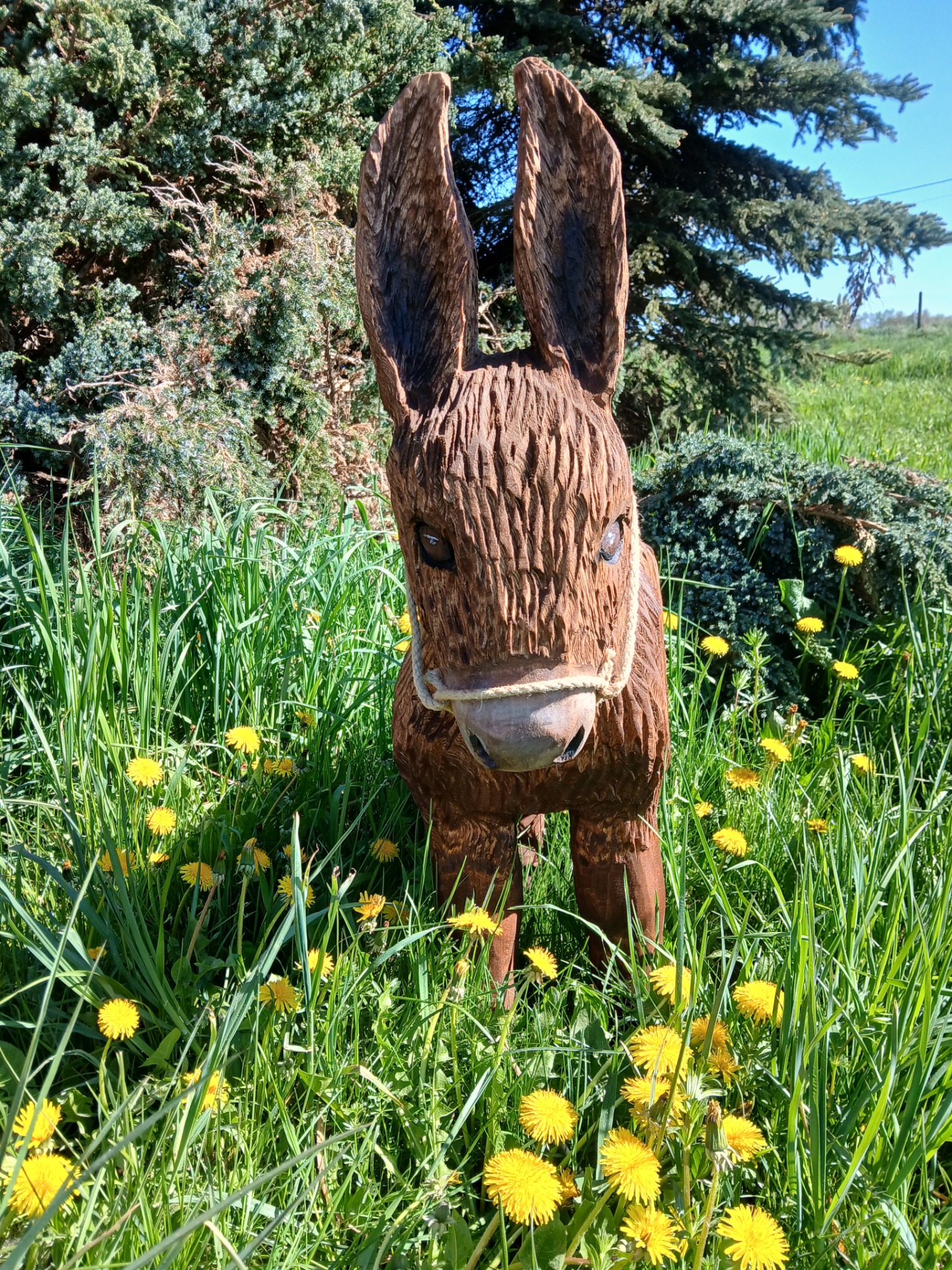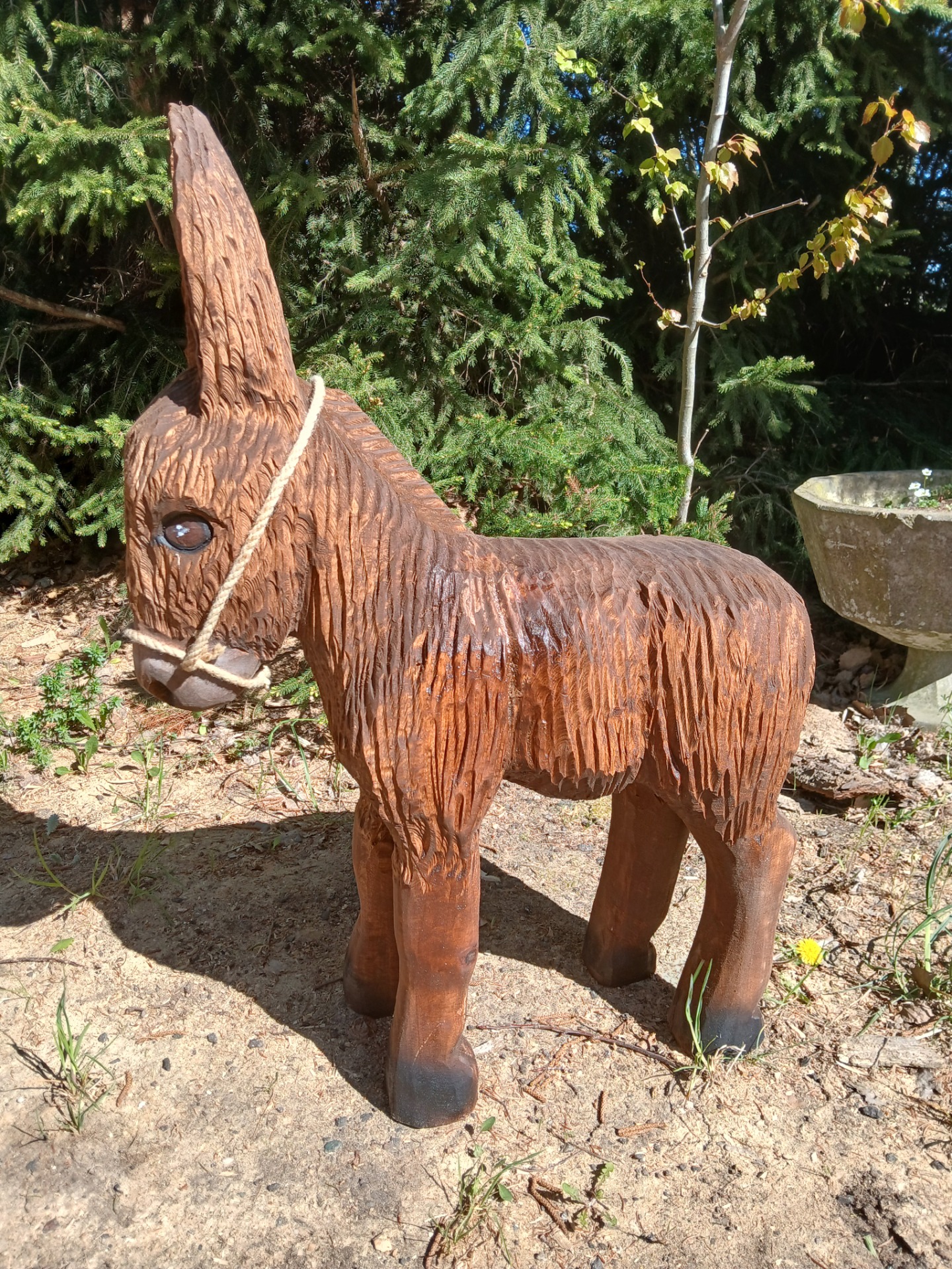 Oslík je vyřezaný z lipového dřeva. Ošetřen lignofixem a remmers hk lazurou. Vhodný pod přístřešek.
