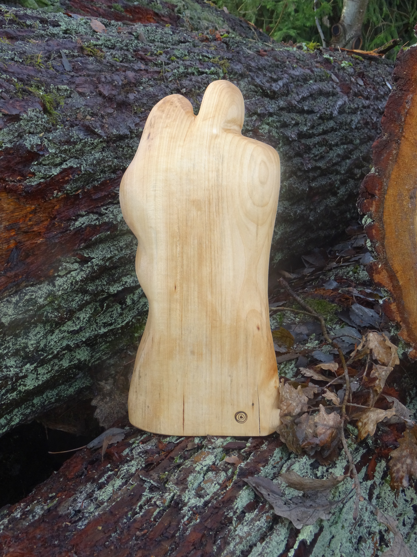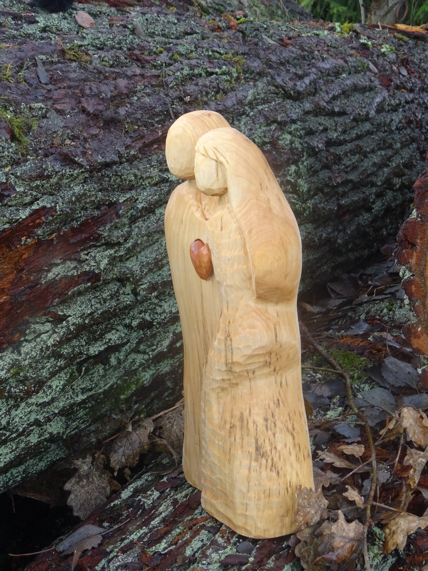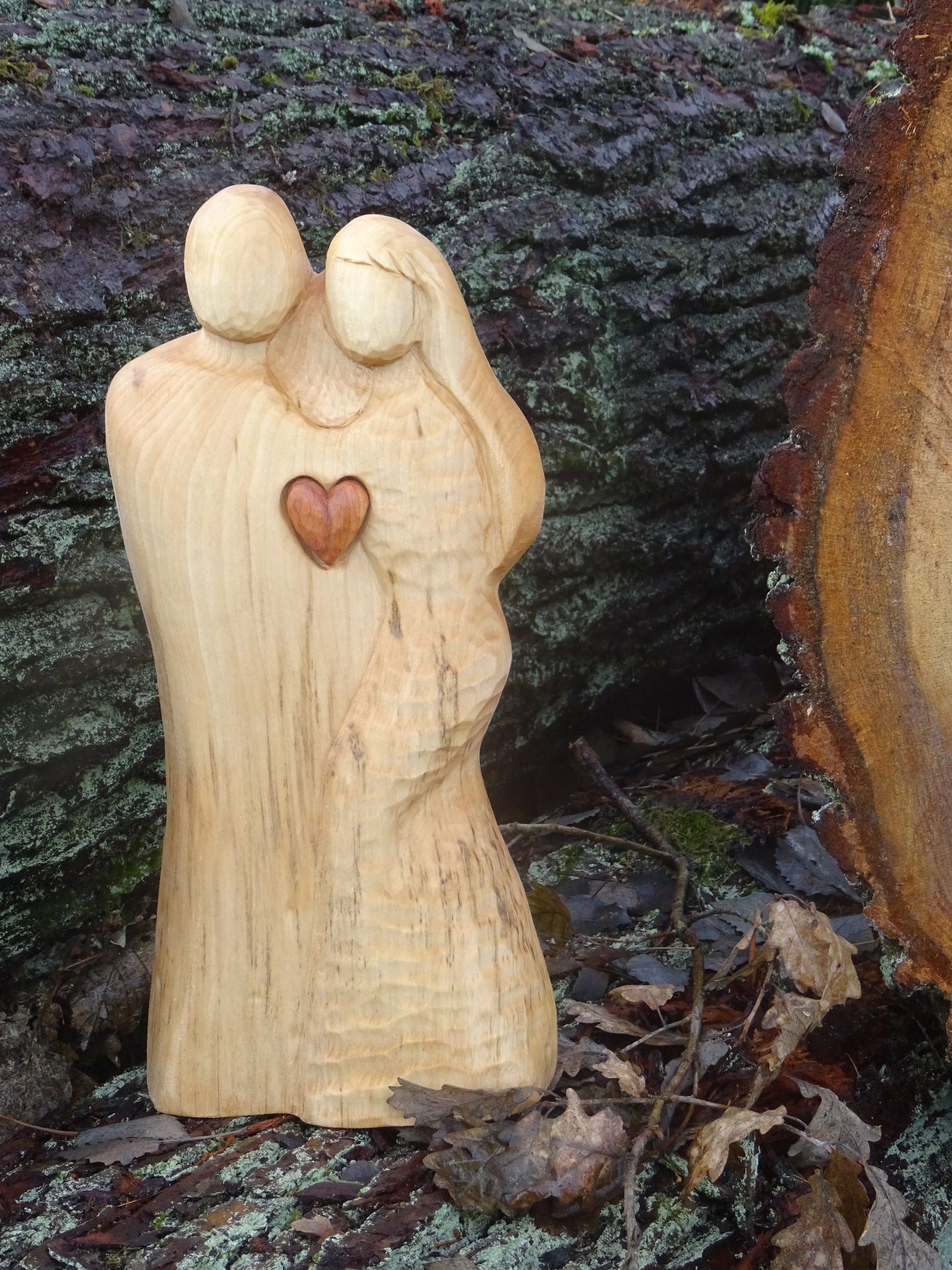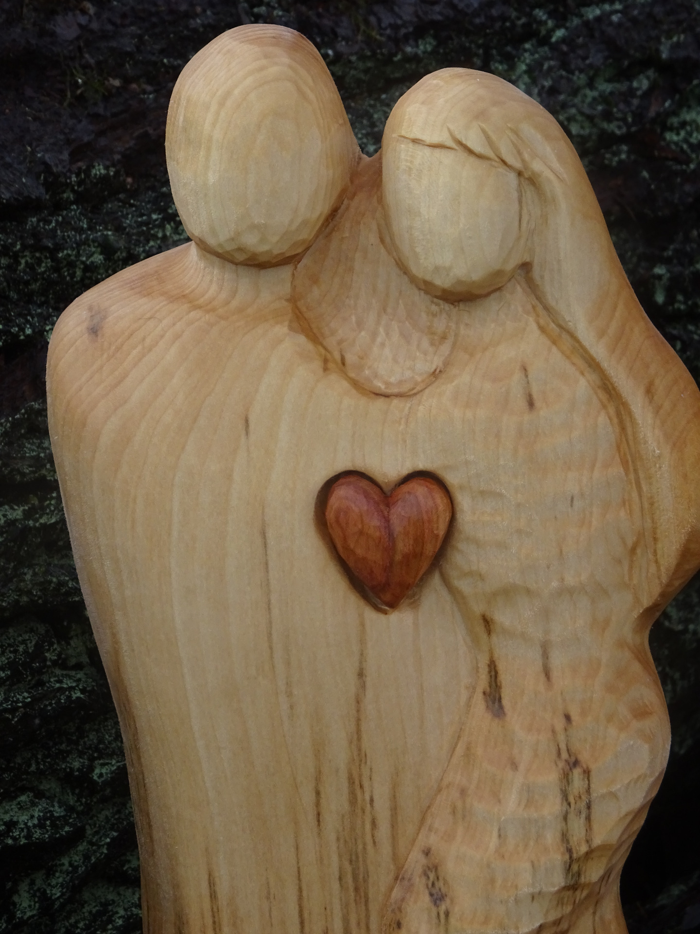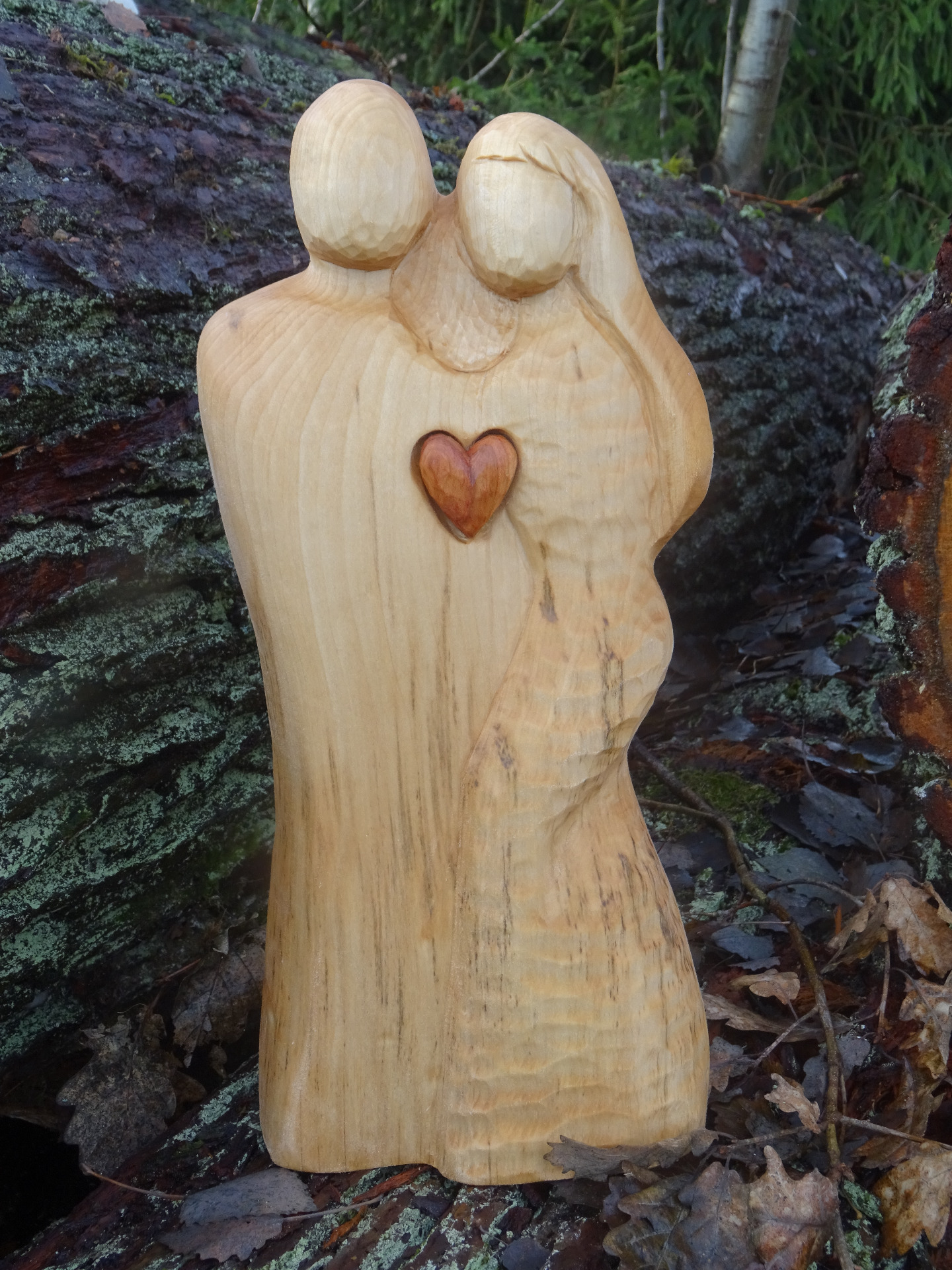 Ručně vyřezaná soška je symbolem lásky, pěkného vztahu a porozumění. Je vyrobena z lipového dřeva a ošetřena olejem s voskem. Vhodná do interieru. Srdíčko ze švestky je vsazené a vlepené.