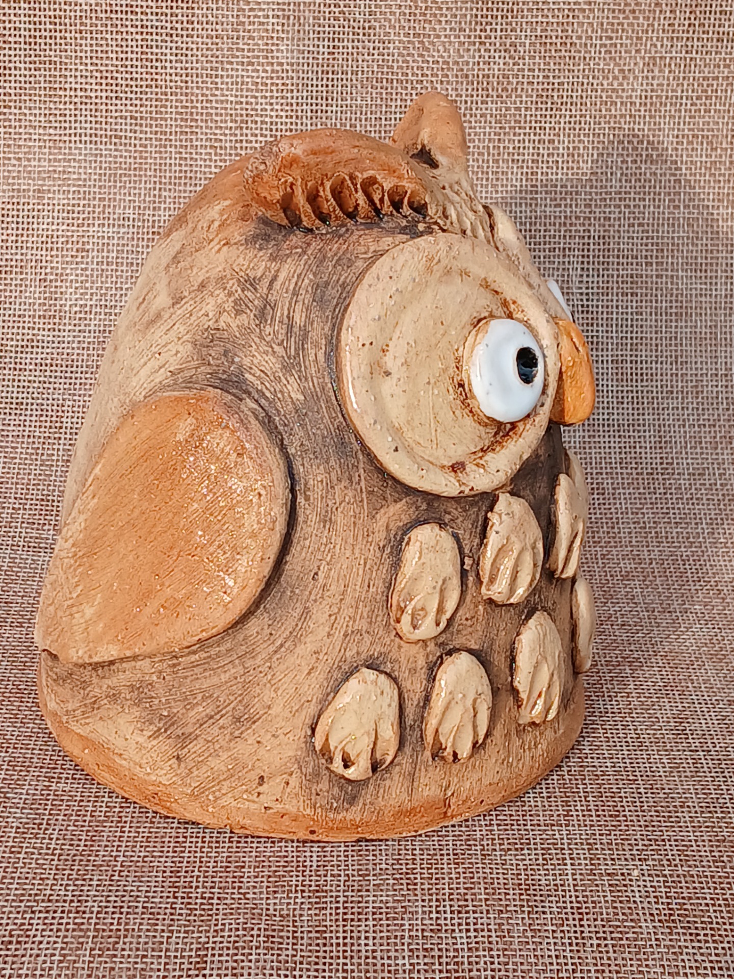 Ručně modelovaná sovička ze šamotové keramické hlíny. Glazura a burel. Páleno na 1150 stupňů. Vhodné do interiéru.