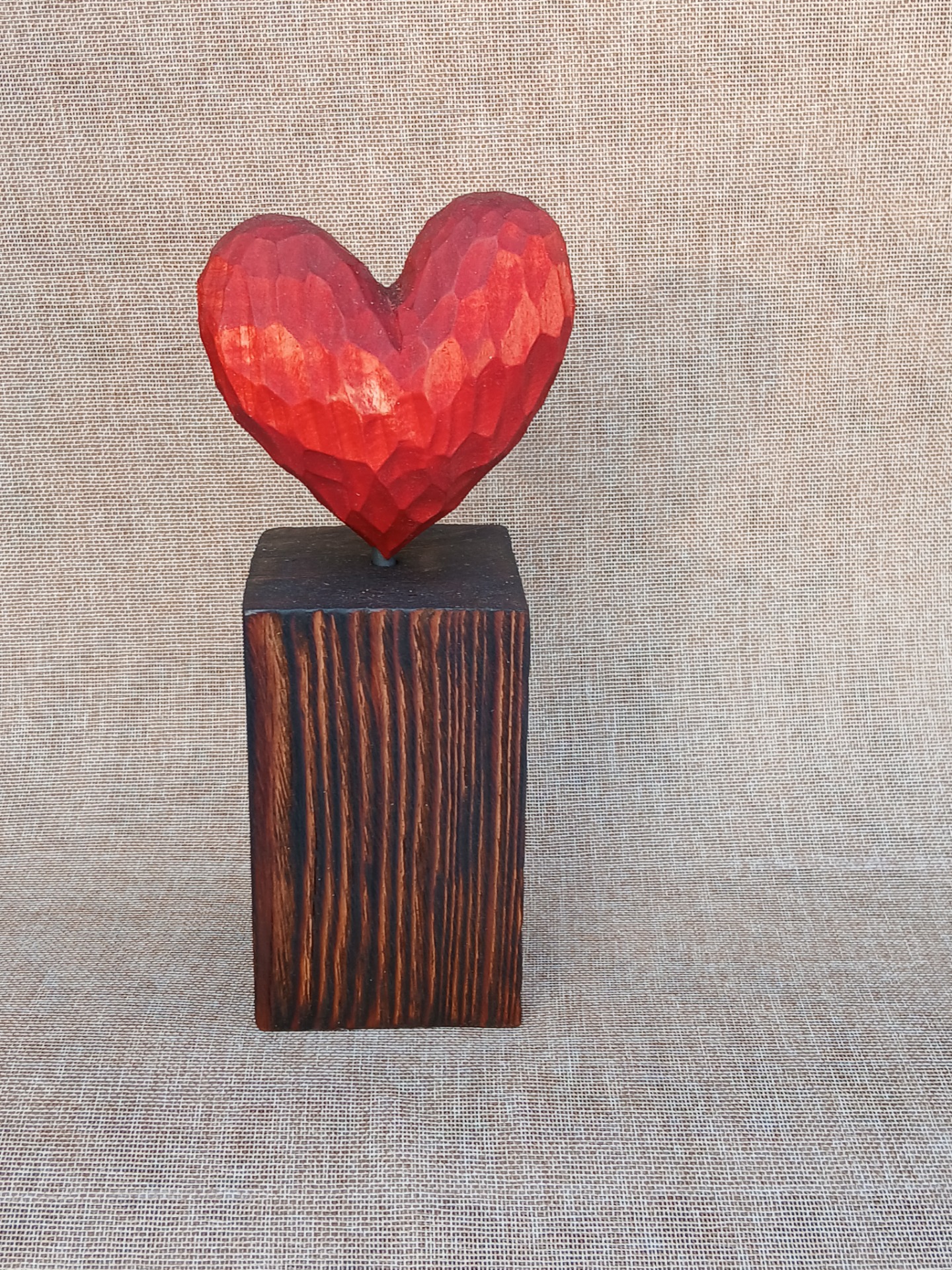 Ručně vyřezané srdíčko je namořené a ošetřené voskem s olejem. Vsazené na podstavec, který je ošetřen lazurou a olejem s voskem. Vhodné do interieru. Milá dekorace a milý dárek z lásky. ❤️30cm x 13cm